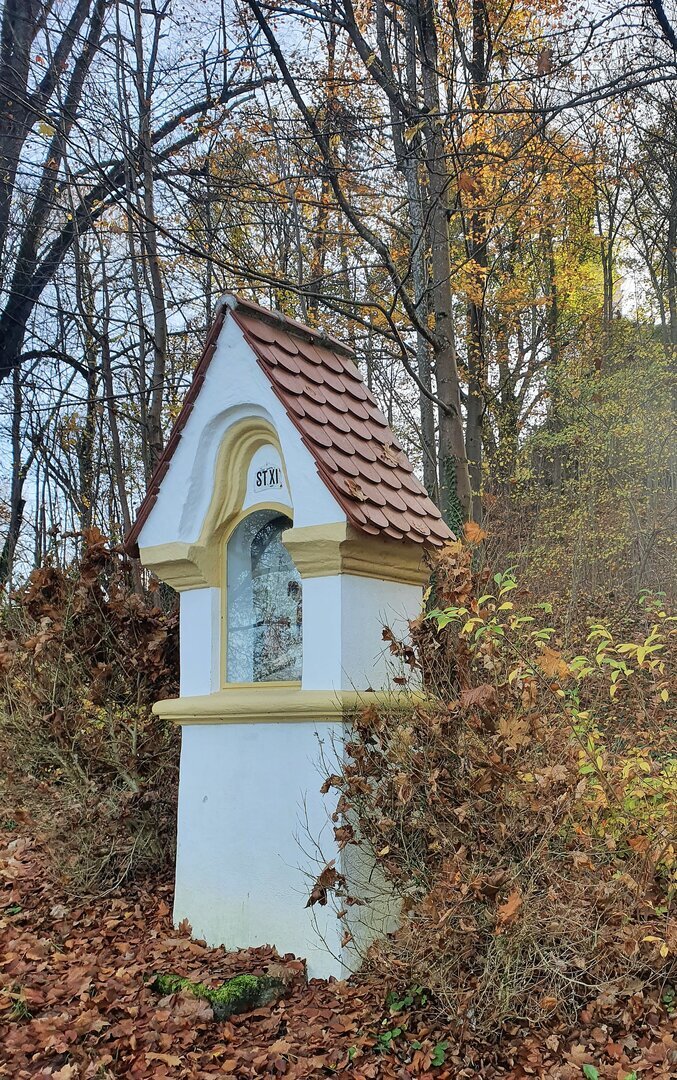 Der Aufstieg zur Kirche führt durch eine beeindruckende Kastanienbaumallee, die bereits 1754 angelegt wurde. Entlang des Weges begleiten 14 Kreuzwegstationen die Pilger auf ihrer spirituellen Reise. Der Weg endet in einer eindrucksvollen Kreuzigungsgruppe – ein Ort der Stille und Besinnung, eingebettet in die Natur.
