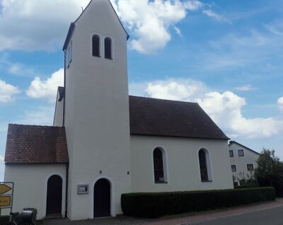 Kapelle St. Johannes in Kainsricht. Ursprünglich gab es eine Lourdes-Grotte, die jedoch 1952 entfernt wurde, um Platz für einen Altar zu schaffen, sodass auch Gottesdienste in der Kapelle abgehalten werden können.